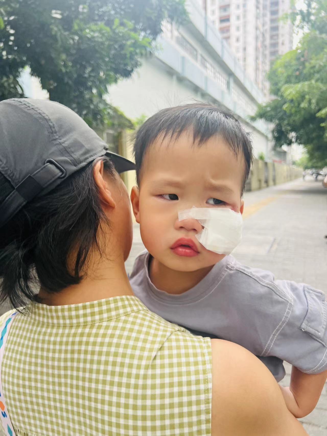 左脸磕破,回来带他去社康将创面消毒包扎了一下。好在只是表皮,希望不会留下疤。事后反思,责任在我,我不该偷懒不跟随他的车子一起下来。明知道这种环境下的游戏摔跤的概率很大,三岁小朋友缺乏危险预判意识,还放任发生,作为监护人严重失职。小朋友受到皮肉之苦,大人也心疼。