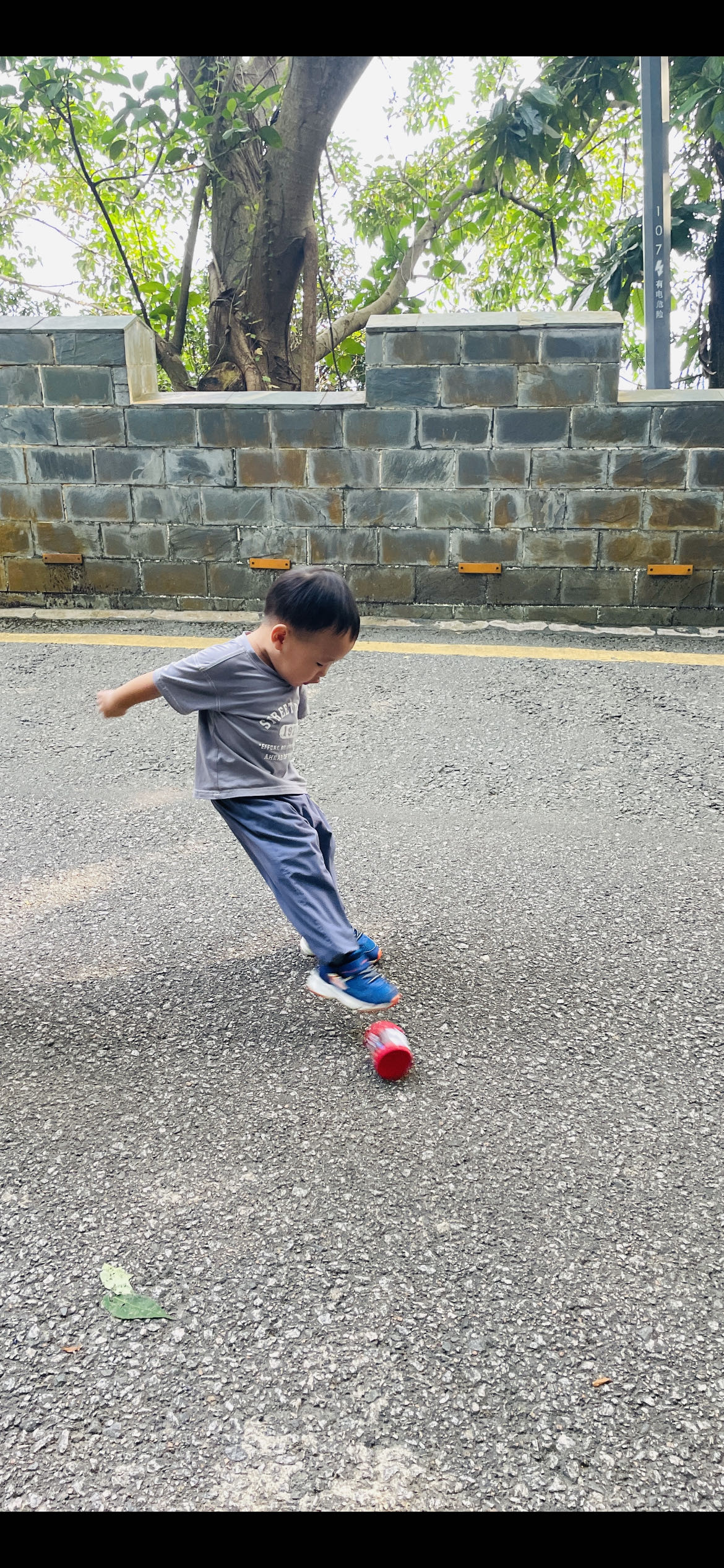 离山顶很近了,时间已是下午三点,预留下山时间,于是此处折返,往龙珠门方向下山。先走小路带安安去看了猴子,很多人围观。这猴子不知哪来了,有几十只,以前没见过。看完猴子后,继续来到大路上,走大路下山。巧克力豆已吃完,剩一个空瓶子,我拿过空瓶子放地上,踢着向前滚下。于是一个新玩法产生,外加一个空水瓶,靠着这俩空瓶子,安安和妈妈边踢边走,比赛看谁踢的远、看谁扔的远,走完几乎一整个下山路段。